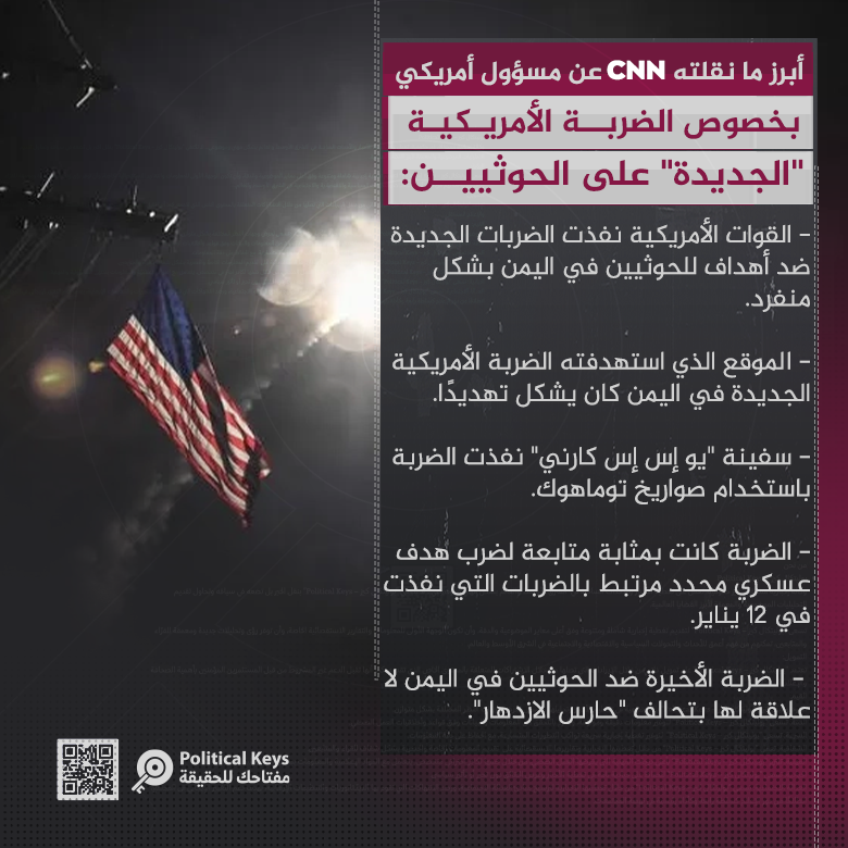 أبرز ما نقلته CNN عن مسؤول أمريكي بخصوص الضربة الأمريكية “الجديدة” على الحوثيين: