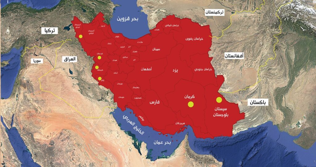أما في الجنوب الغربي، فتظهر التحركات الأحوازية من جديد، وهي مرتبطة بإقليم غني بالنفط ويشكل أحد أهم مناطق الطاقة في إيران، ولذلك فإن أي نشاط مسلح هناك يضرب مباشرة أحد أهم مفاصل الدولة الإيرانية.